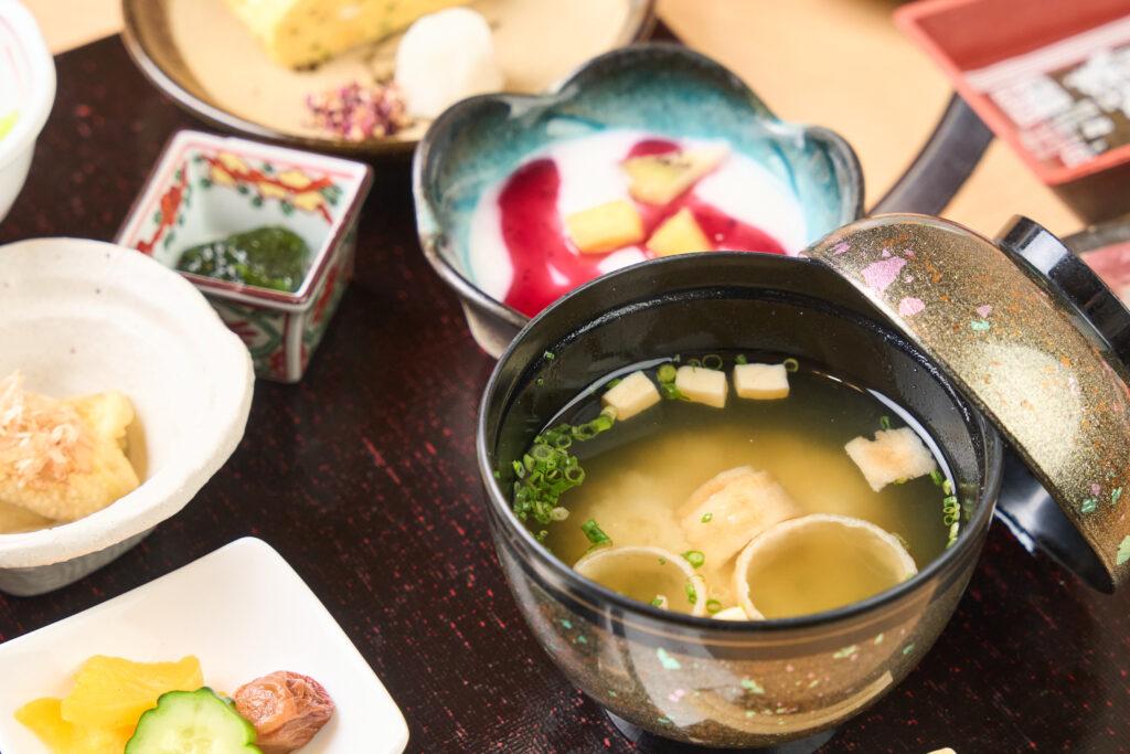 その水で丁寧に炊き上げた、炊き立てご飯の旨みをしっかりと味わえる朝食です。