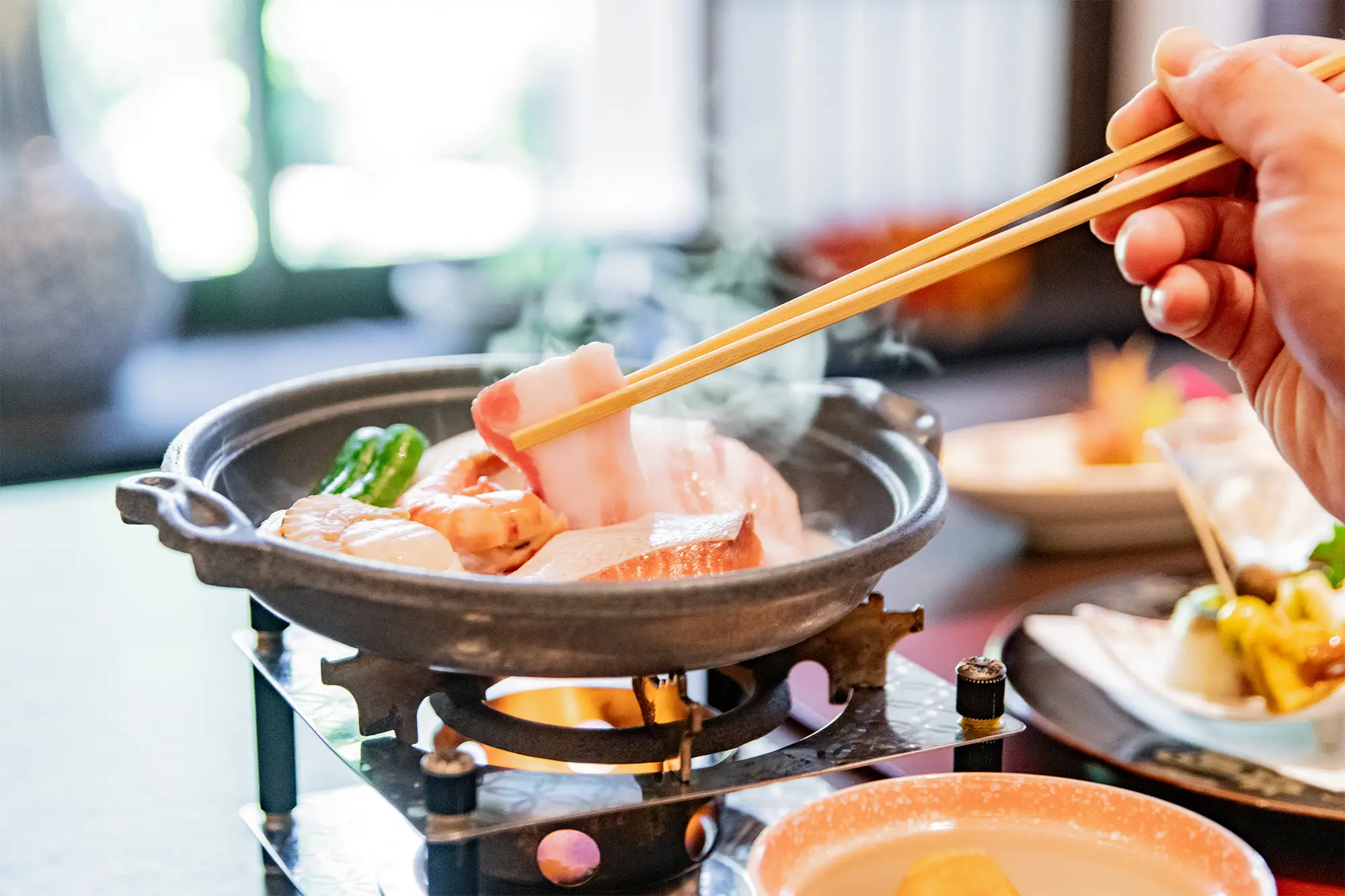 Tucked away along a clear mountain stream in the depths of the Kirishima Onsen area, Seiryū-sō quietly stands as a hidden inn that shows visitors “another luxury of Kagoshima.” The kaiseki cuisine — skilfully making use of black pork, seasonal local vegetables, and fresh seafood — is the very essence of local production for local consumption. With each dish the blessings of the land and the scent of the season unfold, gently satisfying the hearts of travellers.